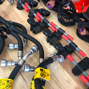 GM Sensor and GM fuel line. Wire harness seems to be made of good quality and the connectors appear to be OEM. No need to pay more for a brand name kit. This works perfectly.